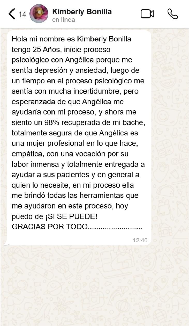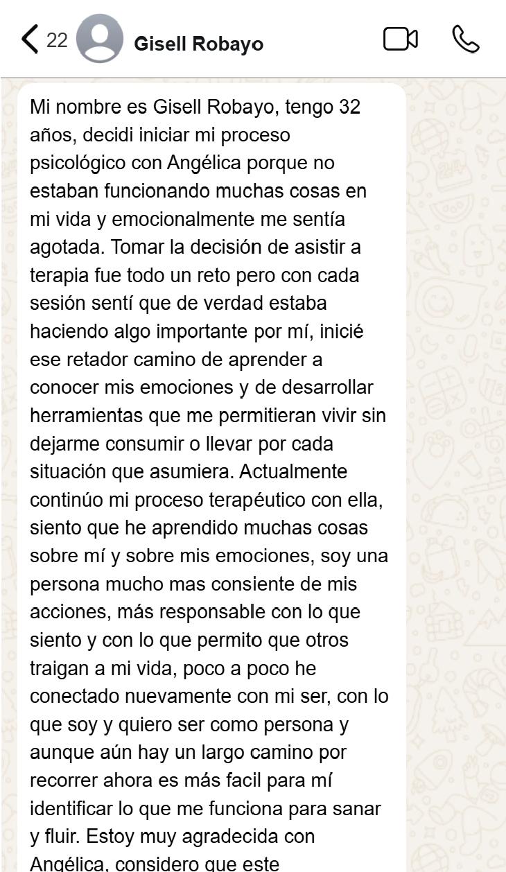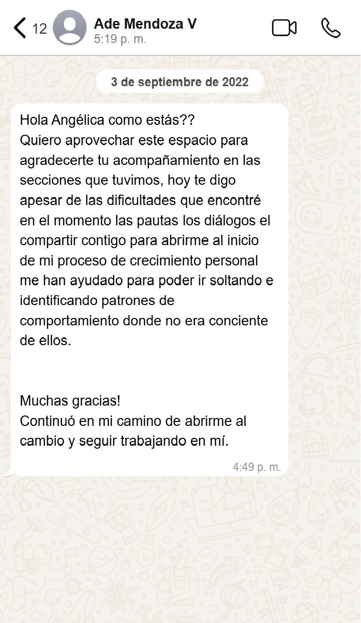 Angélica combina su experiencia profesional y vivencias personales para ofrecer un enfoque terapéutico cálido y empático. Su misión es acompañar a sus pacientes en su sanación, empoderamiento y crecimiento, ayudándolos a construir una vida plena y significativa.